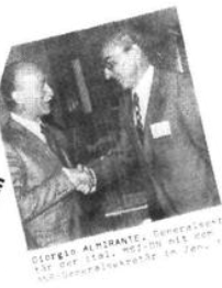 Im Jahr 1972 verlieĂź Georgwilhelm Burre die NPD, um mit Henning Eichberg und anderen die „Aktion Neue Rechte“ (ANR) ins Leben zu rufen. Deren Generalsekretär wurde Georgwilhelm Burre. Sein Anti-Kommunismus war gespeist von den Erfahrungen in der DDR und den Erlebnissen als Häftling in Bautzen. Das erklärt auch, warum er 1973 auf eigene Faust das Gespräch mit Italiens Neofaschisten suchte. Sein Besuch in Rom wurde innerhalb der ANR heftig kritisiert und fand keine Fortsetzung. Bild: Georgwilhelm Burre (rechts) mit dem damaligen Vorsitzenden des italienischen MSI, Georgio Almirante.
